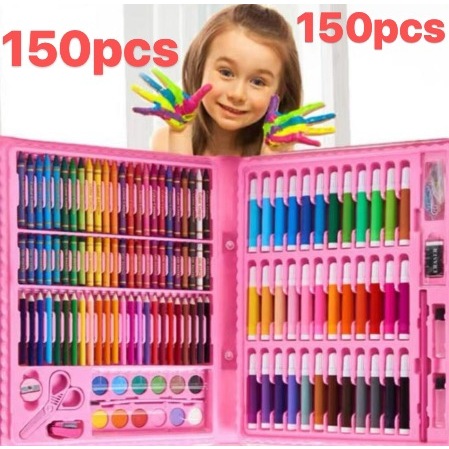 Maleta De Pintura Infantil Estojo 150 68 48 24 e 86 Peças Para Colorir Kit de Desenhar Canetinhas Meninas Unicórnio Carros Dinossauro
