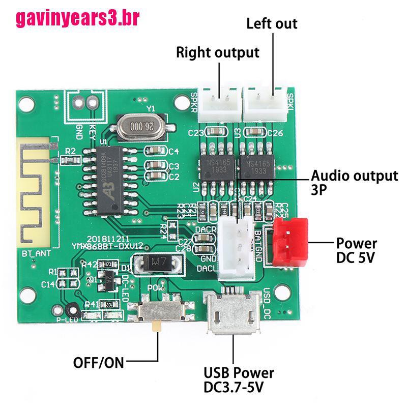 { GAVBR } Bluetooth 5.0 Placa Amplificadora Mini 5W * 2 Áudio Decodificador De Amperímetro Estéreo De Energia