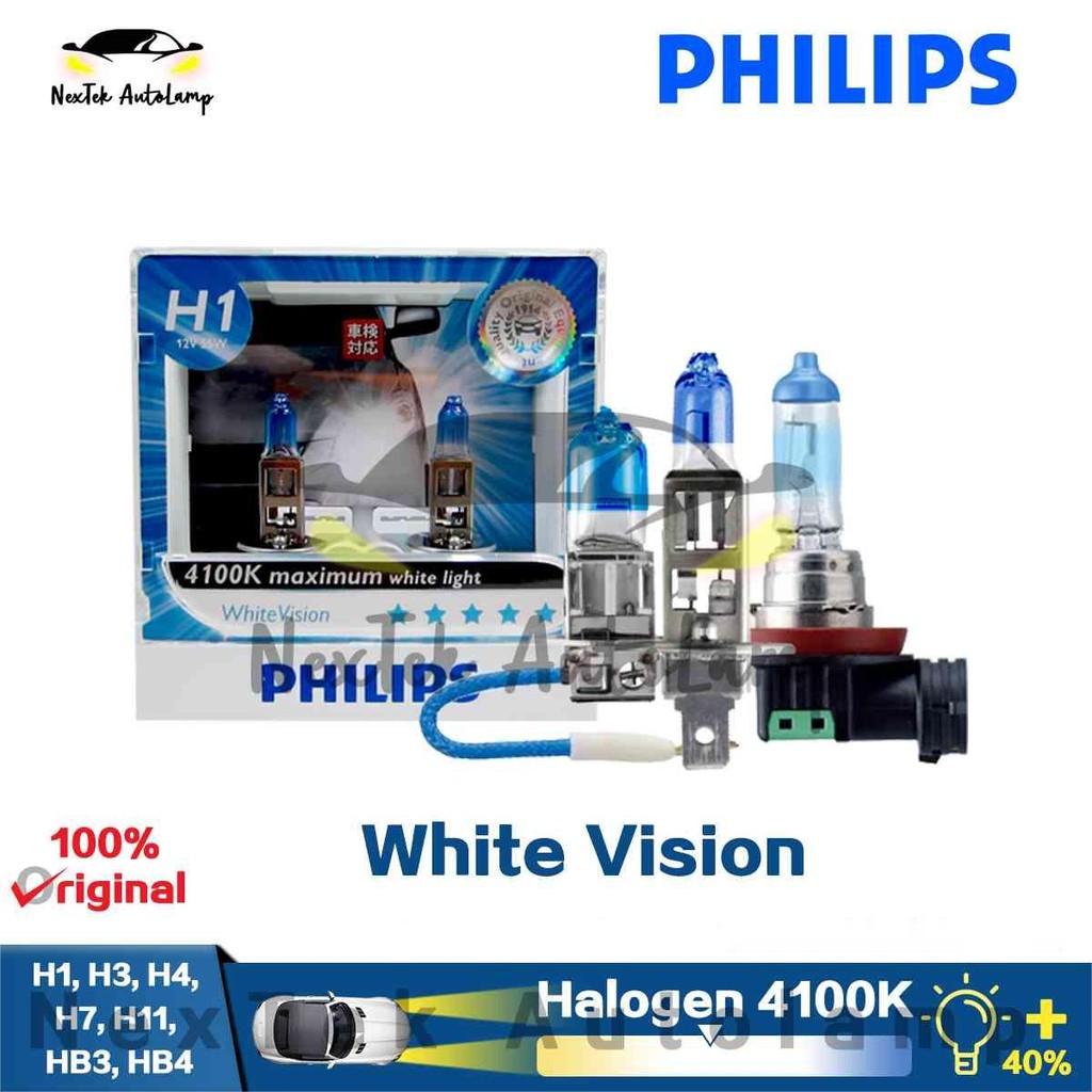 Philips White Vision H1 H3 H4 H7 H11 HB3 HB4 12V 4100K 4300K Lâmpada halógena para farol de carro com luz branca quente