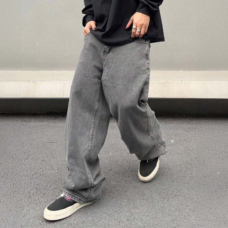 Calça Baggy Cinza balao baggy Jeans Boca Larga pants cân Sk8 Estilosa Moda Masculina Dazzling 100 % Algodão Estilosa