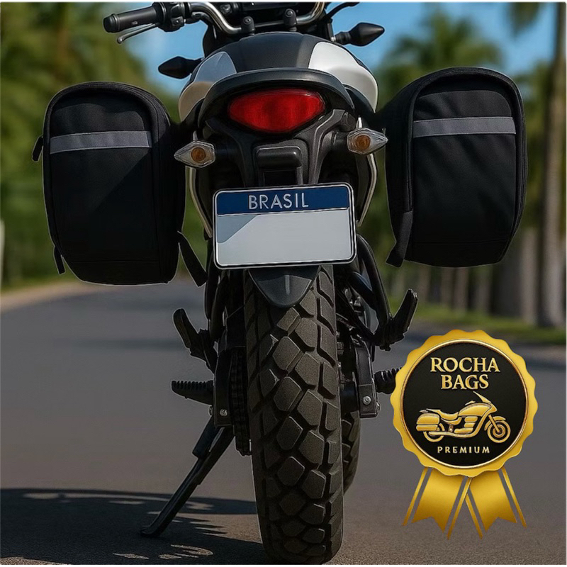 Bolsa Alforge Lateral Universal Par Baú Moto Custom Impermeável Reforçado 62 Litros Nylon Forrado Todas As Motos