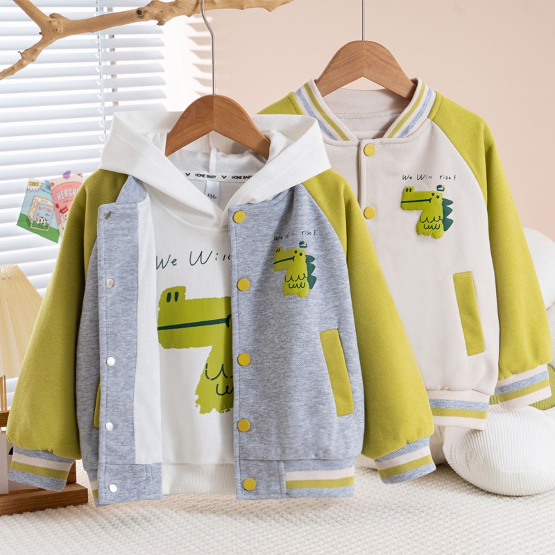 Conjunto De Casaco Dinossauro Para Crianças Primavera/Outono Meninas Moda Capuz Impresso + Jaqueta 2-Piece Kids Splicing Sports Suit 9 Meses-5 Anos