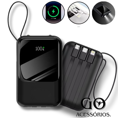 LANÇAMENTO Carregador Portátil 10000 mAH Mini Power Bank Com Cabo Embutido e Lanterna
