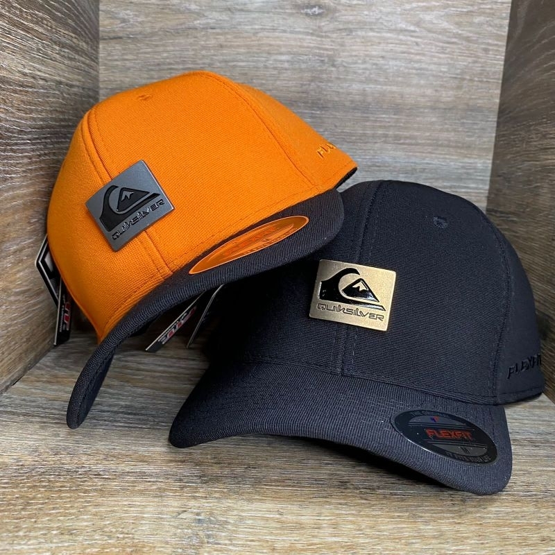 Boné Quiksilver Flexfit Fechado Aba Curva Logo Preto Plate Silver Masculino Alta Qualidade Envio Imediato