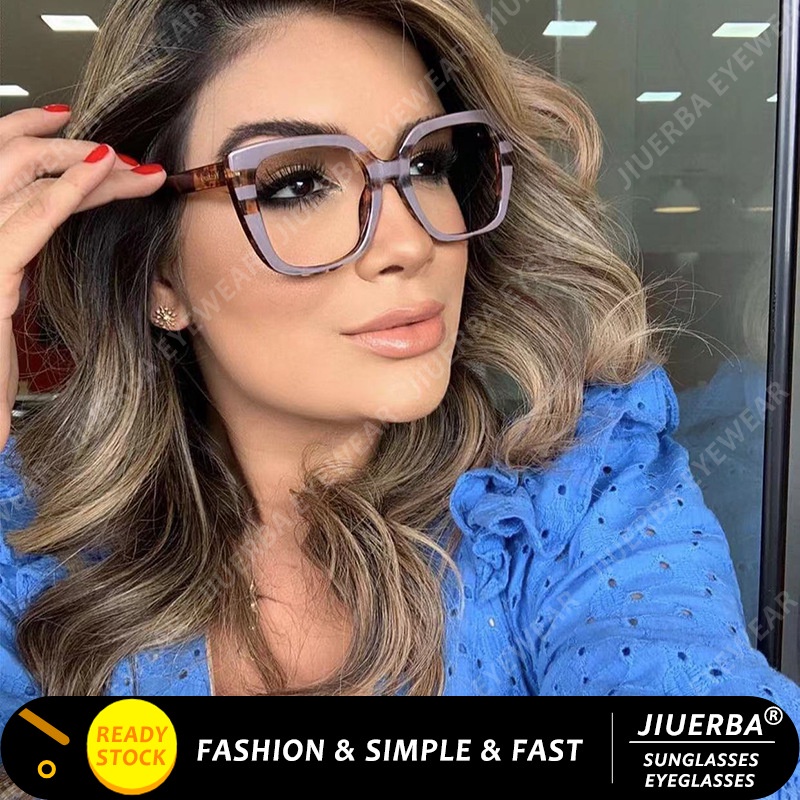 (JIUERBA) Óculos De Moda Ocidental Leopard Square Eyeglass New Fashion Oversized Frame Anti Blue Light Women