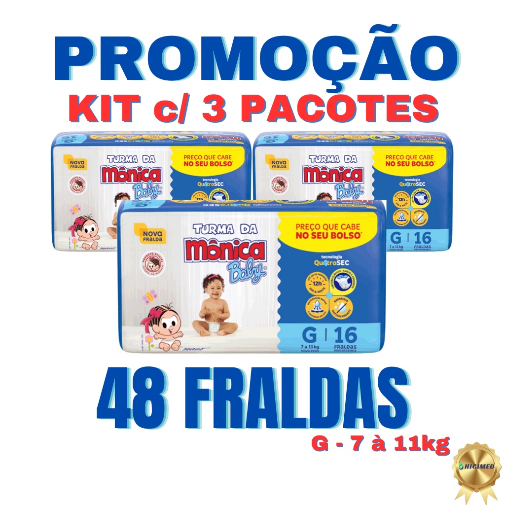 Promoção Kit 3 pacotes fralda Turma da Mônica RN/P/M/G/XG