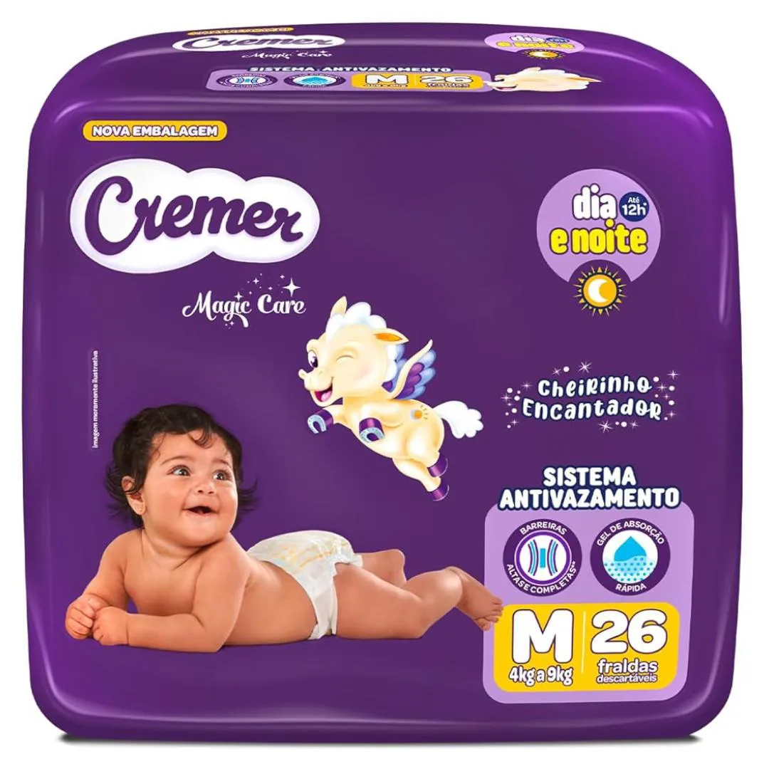 FRALDA CREMER MAGIC CARE DIA E NOITE TAM:M COM 26 FRALDAS DESCARTáVEIS