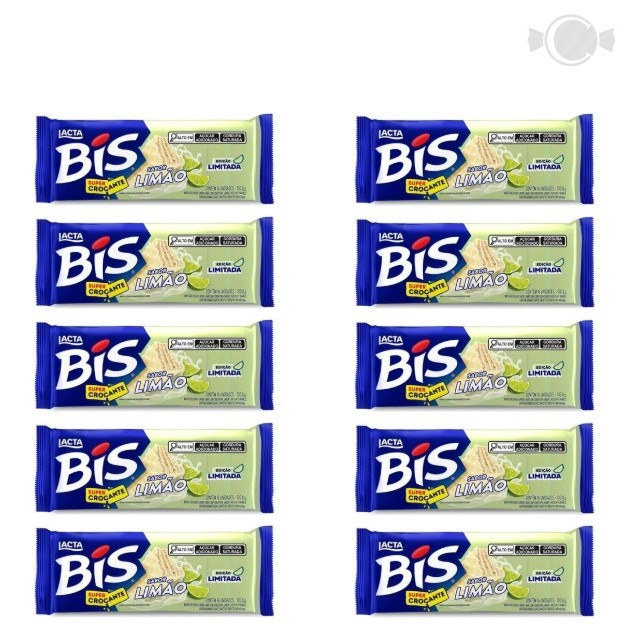 Kit 10 Chocolates Lacta Bis Limão C/16 Unidades 100g