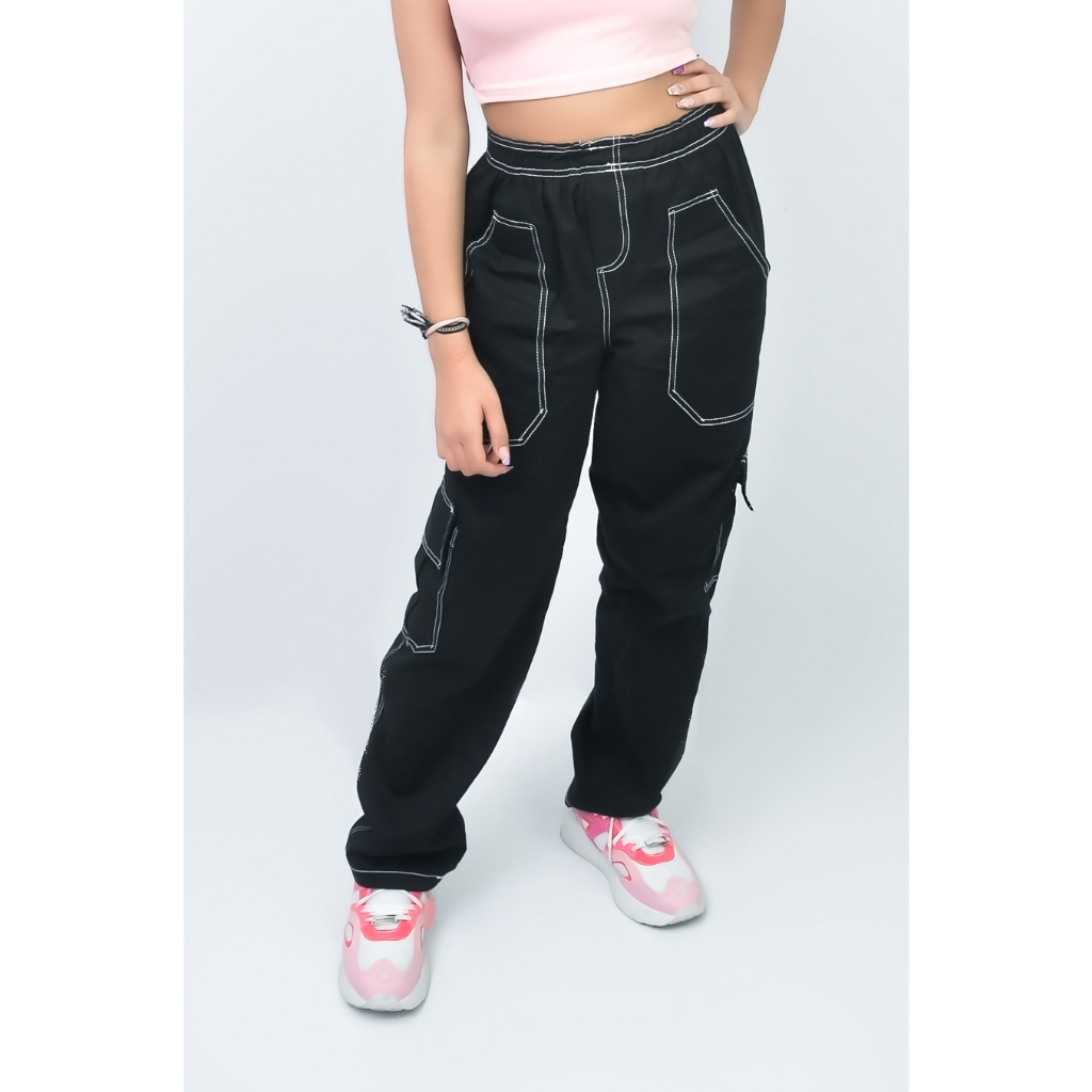 CALÇA CARGO PRETO COM COSTURA BRANCA