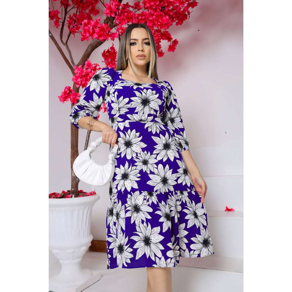 vestido midi feminina estampada de duna com manga com forro Yvc-2