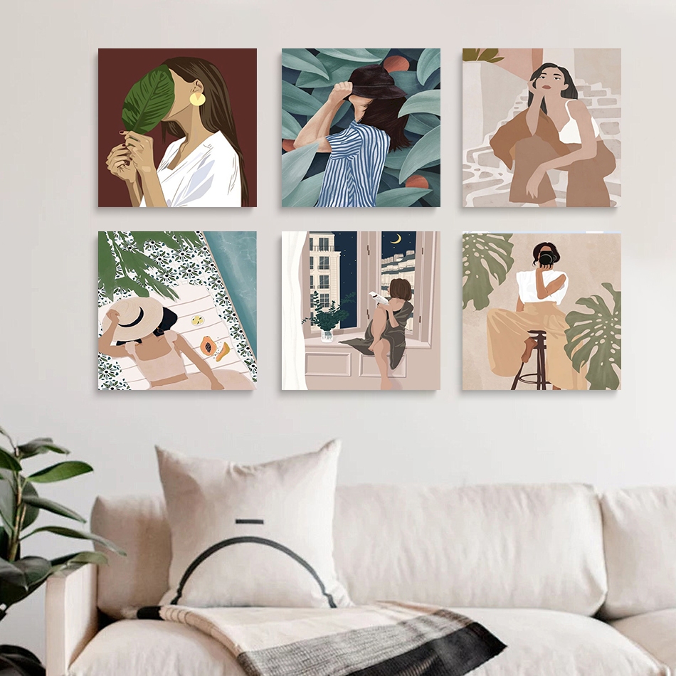 RUOPOTY 20x20cm Tinta Por Números Com Moldura Tela Pintura Abstracta Bela Mulher Para Decoração De Sala De Estar