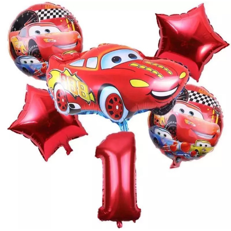 Kit C/5 Balões Metalizado Carros Relâmpago McQueen+Balão Número 30Cm