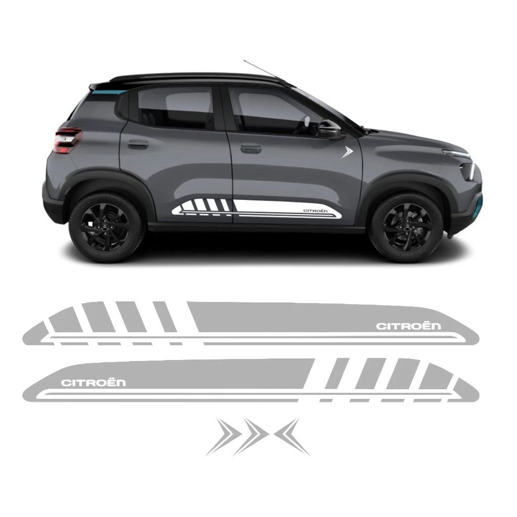 Kit 5 Adesivos Laterais Citroen Novo C3 You Tuning Sport Acessórios Personalizado Prata CT4