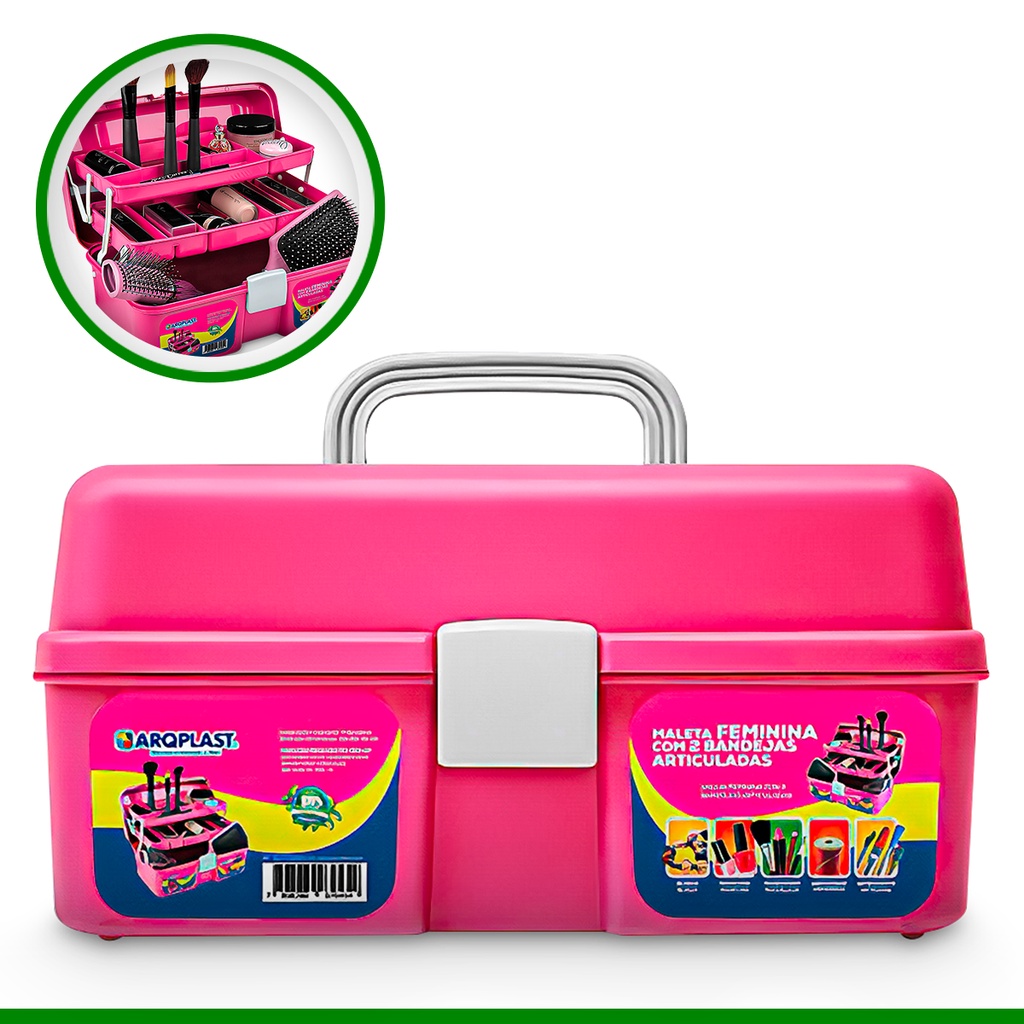 Maleta Manicure Organizadora Feminina 2 Bandejas Articuladas Plástica Multiuso 33cm x 20cm x 16cm Rosa