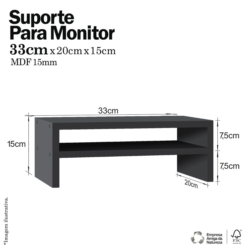 Base De Apoio Suporte Para Monitor De Mesa Em Mdf 2 Partes - Preto