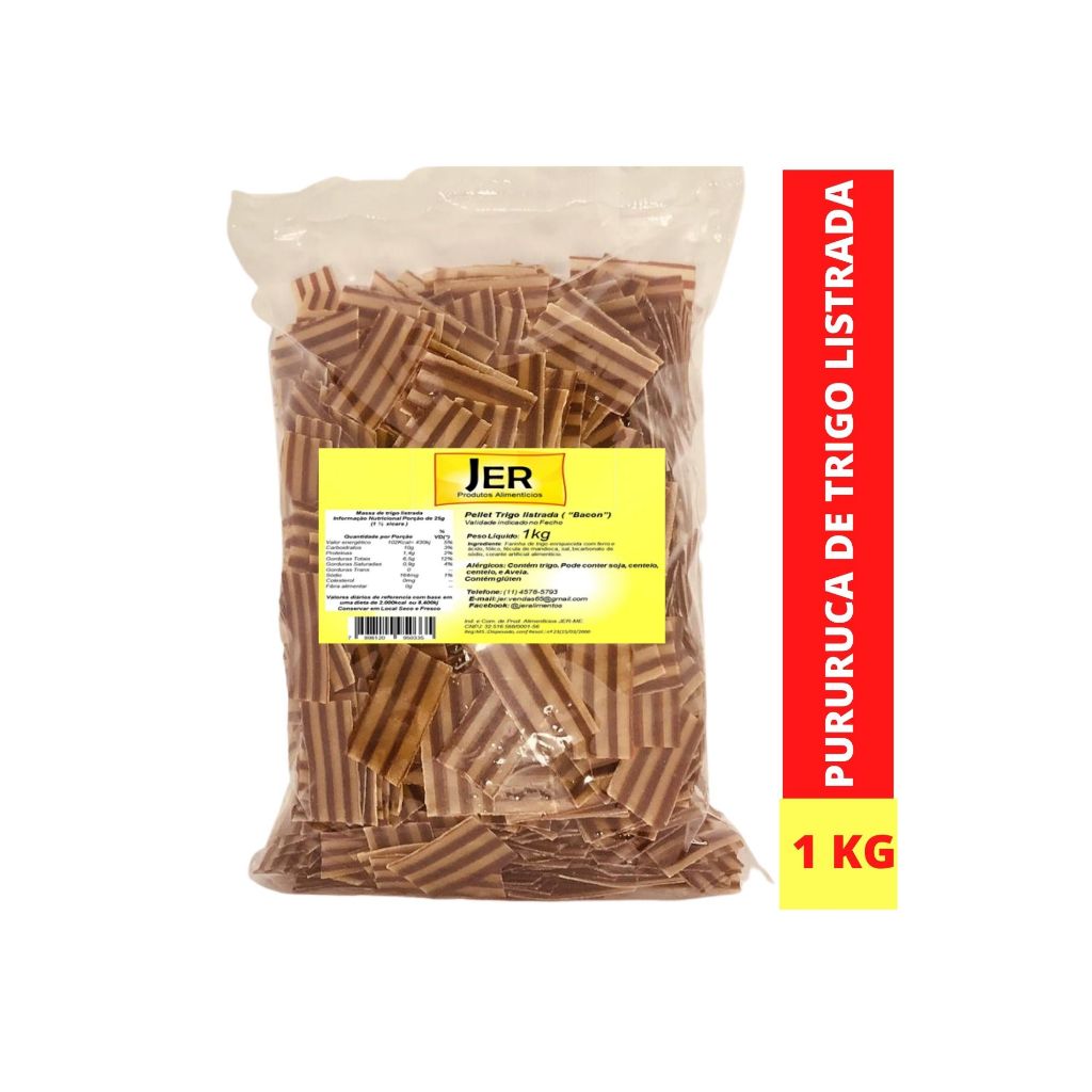 Pururuca de Trigo Crua Para Fritar Salgadinho de Bacon Listrada 1kg + Tempero de Bacon