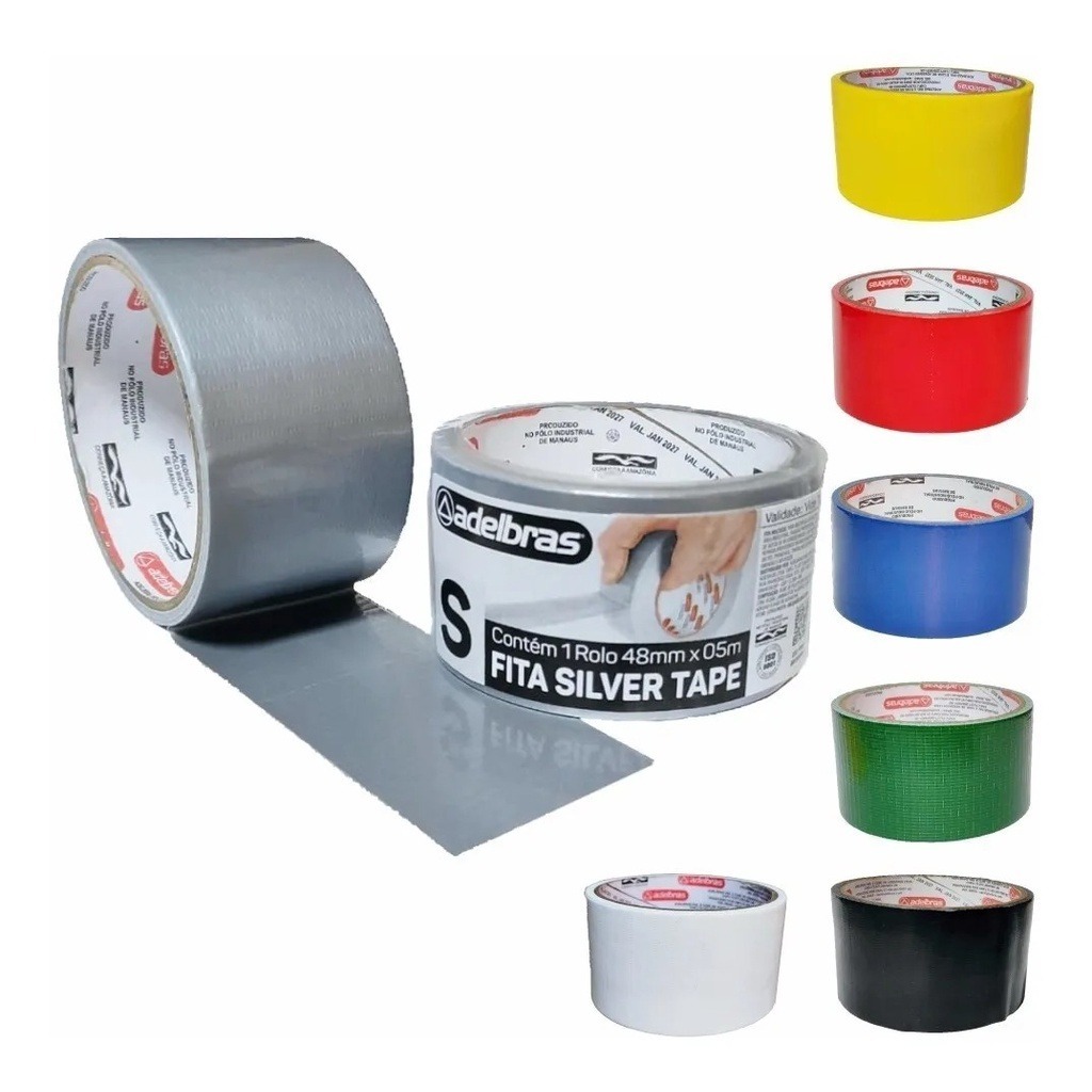 Fita Silver Tape Multiuso 5 e 10 Metros Alta Resistência 48mm Preta Prata Branca Amarela Verde Vermelha ADELBRAS