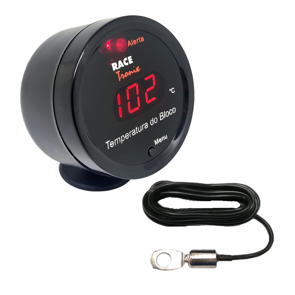 Medidor Temperatura do Bloco do Motor Digital Vermelho TB10 C/ Sensor 2,4 Metros e Copo Suporte Adesivo Dupla Face