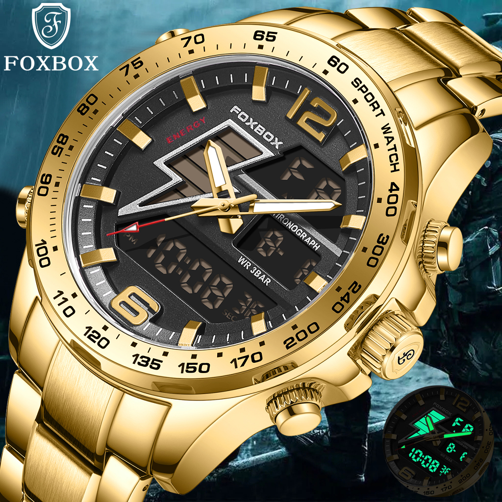 LIGE Relógio De Pulso Masculino De Luxo Relógios Original Gold Quartz Full Steel Waterproof Exibição Dupla
