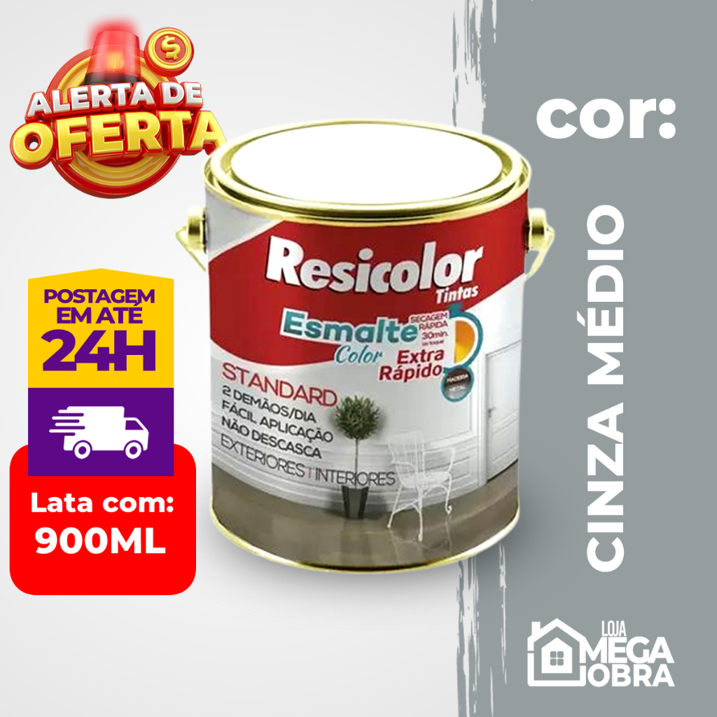 Tinta Esmalte Sintetico Brilho Standard para Madeira Ferro latão Interior e Exterior Cinza Medio 900ml Resicolor