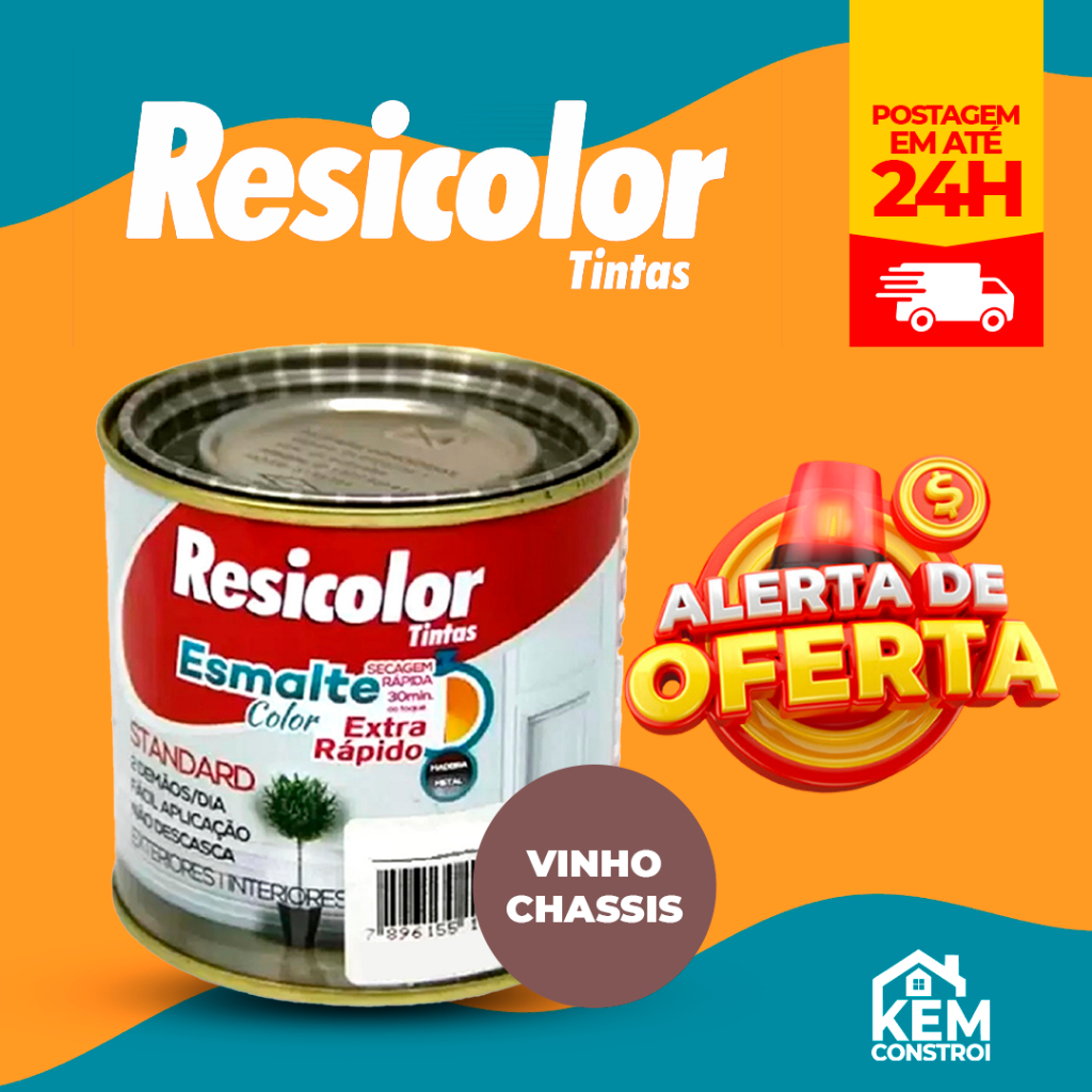 Tinta Esmalte Sintetico Brilho Standard para Madeira Ferro latão Interior e Exterior Vinho Chassis 900ml Resicolor
