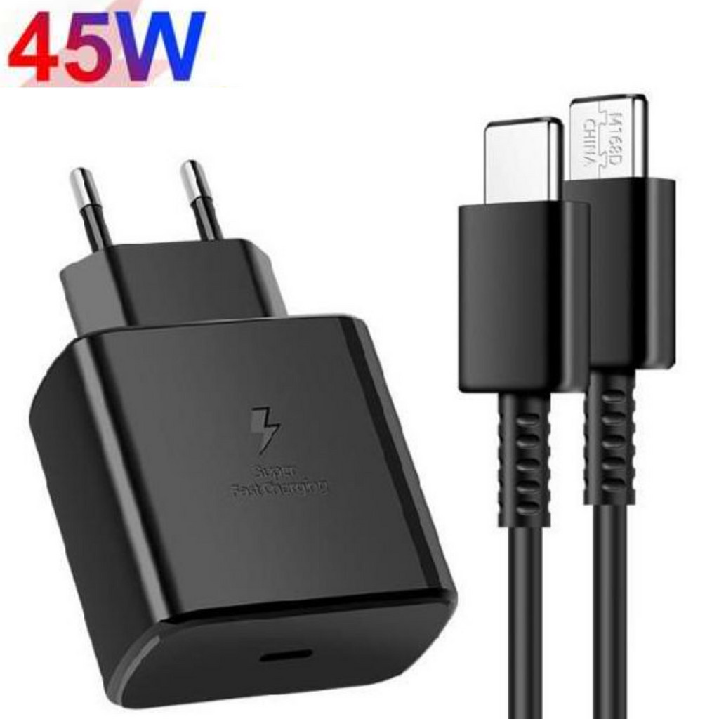 Carregador compatível para Samsung Preto Usb Tipo C 45W Turbo Completo Com Carregamento Rápido S10 S20 S21 S22 Note 10 20 Galaxy Linhas A