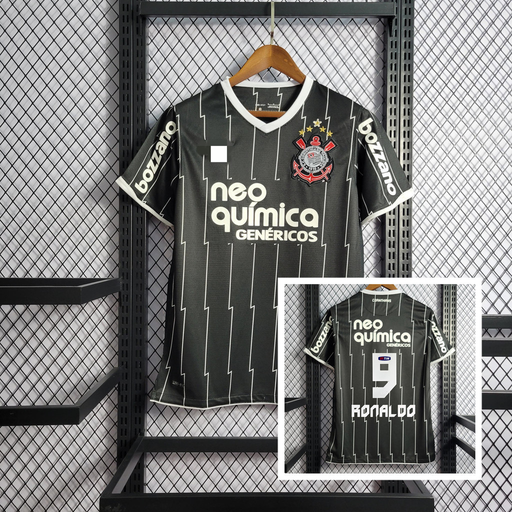 Camiseta sweatshirt | Retro 2011-12-Temporadas Coríntios Longe Preto Manga Curta
