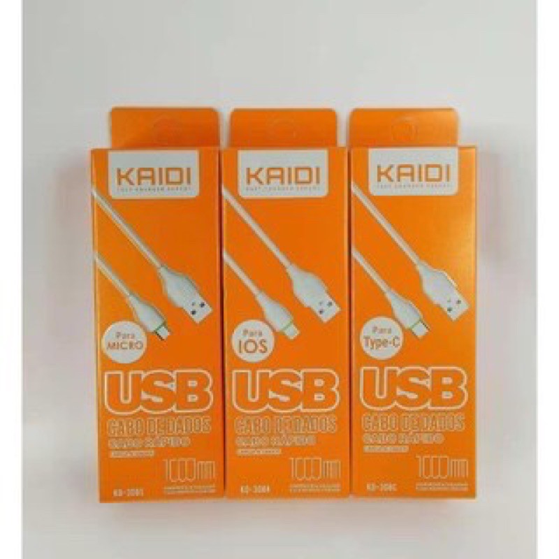 Cabo Carregador Turbo Rápido ( KAIDI ) Reforçado UBS MICRO V8 / Tipo C / IPhone
