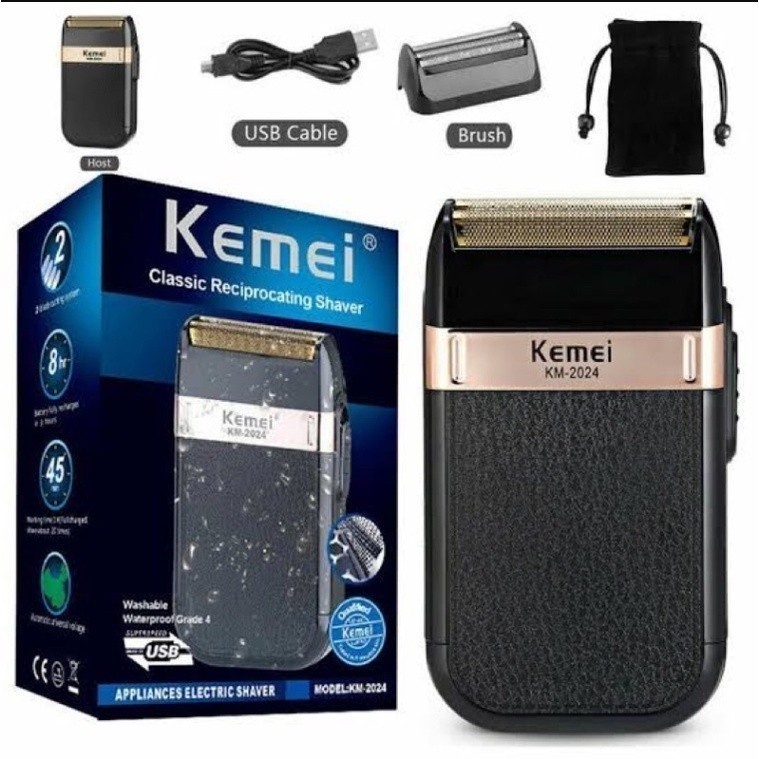 Maquina de barbear Barbeador elétrico sem fio recarregável Kemei Classic Shaver Km 2024 - Bivolt