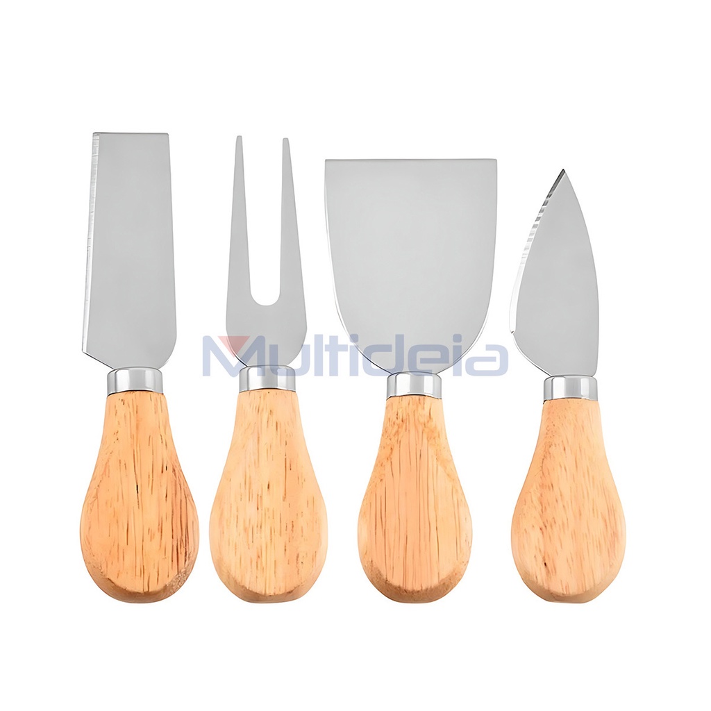 Jogo de Facas para Queijo com 4 Peças Inox e Cabo de Madeira