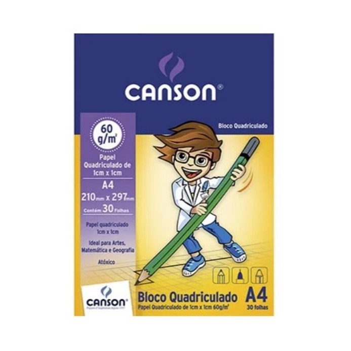Bloco Canson Escolar Quadriculado A4 - 60gm/m², 30 folhas