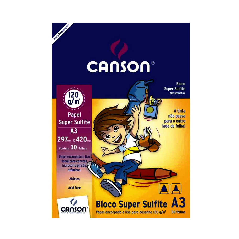 Bloco Papel Desenho A3 Canson 120g Super Sulfite 30 Folhas