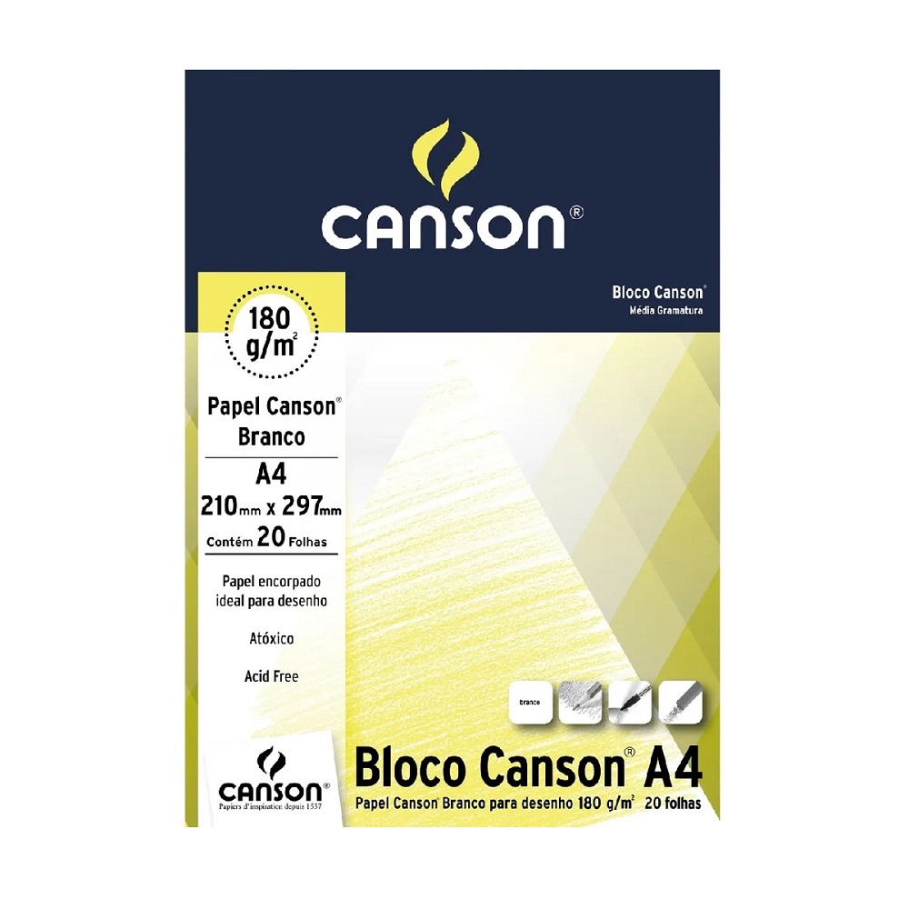 Bloco Desenho A4 Estudante Canson 180g, 20 Folhas, Branco