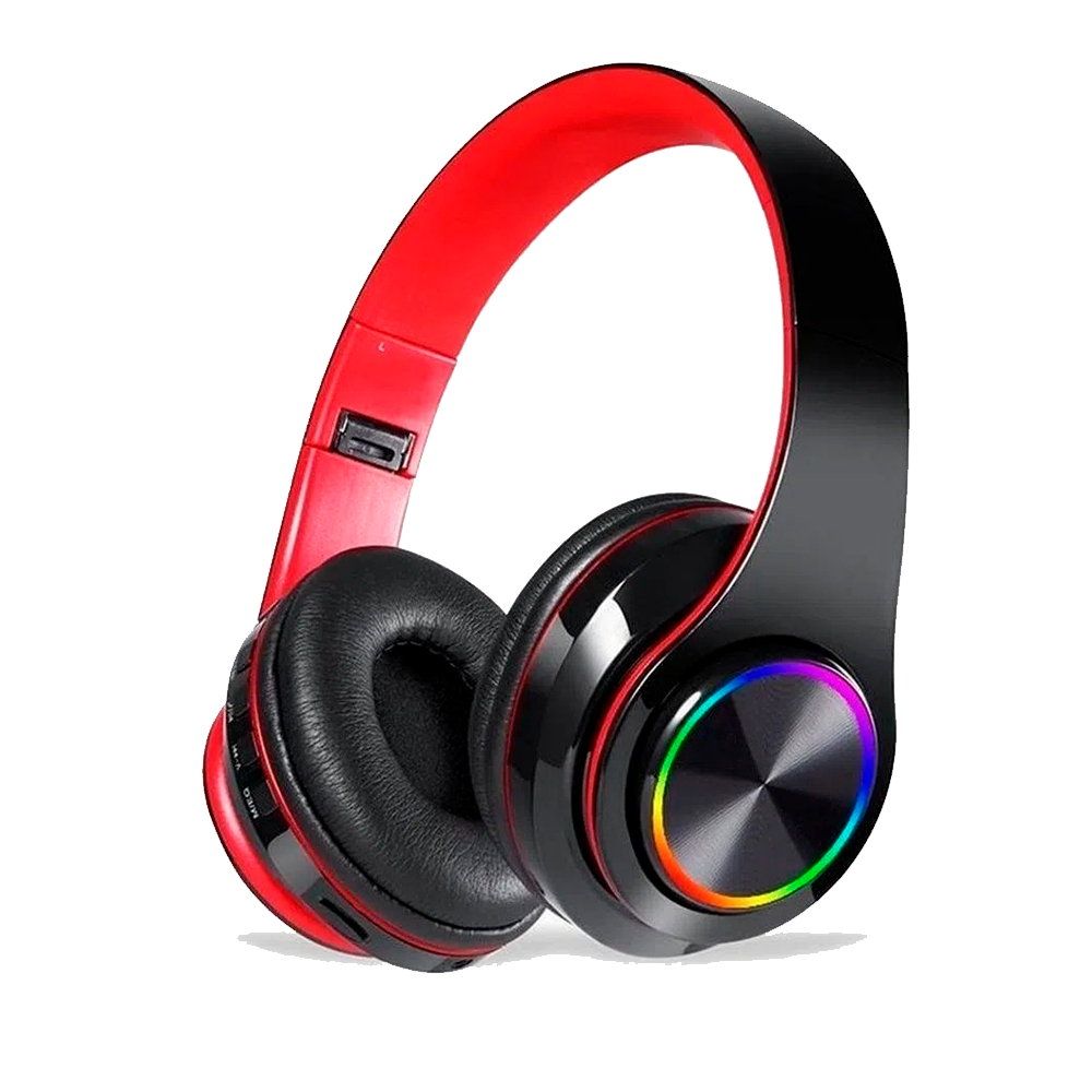 Fone De Ouvido Over-ear Gamer Sem Fio Preto Com Luz Led Preto/Vermelho