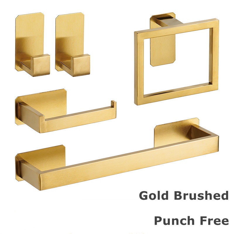 304 Conjunto De Ferragens Para Banheiros Em Aço Inoxidável Escovado A Ouro Suporte De Papel Toalha De Banho Barra De Gancho Acessórios De