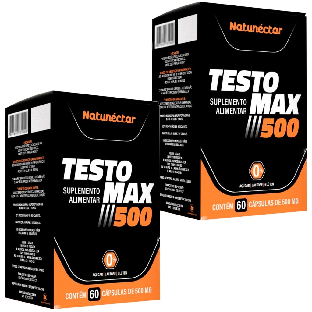 Kit 2 Potes Suplemento Alimentar Testomax Natural 100% Puro - Natunectar 120 Cap 500mg Testo Premium