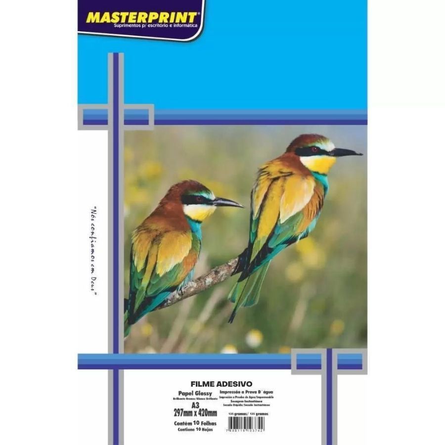 Papel Fotográfico Adesivo 130g Branco Brilhante Glossy A3 Masterpint Com 20 Folhas