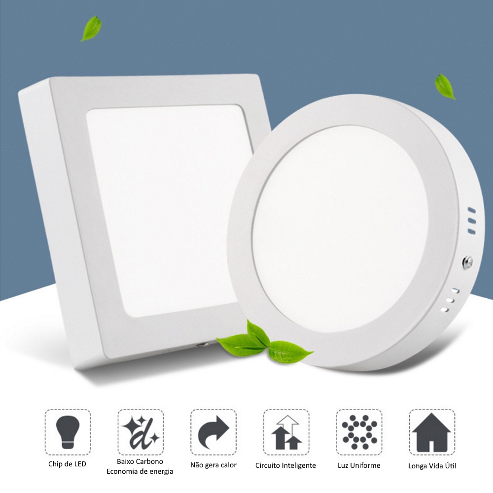 Luminária Painel Plafon Led 18W Quadrado Redondo Sobrepor