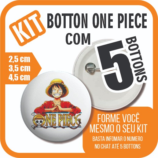 KIT 5 Botton One Piece Anime Desenho Manga Pin 3,5 cm 4,5 cm