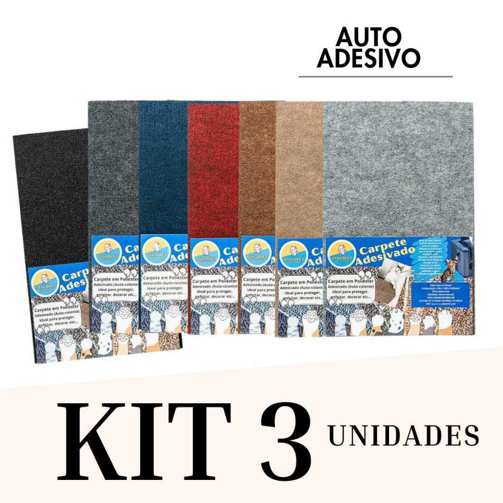 Kit 3 Adesivos - Arranhador em Carpete para Gatos Protetor Sofá Cama Box Móveis e Parede