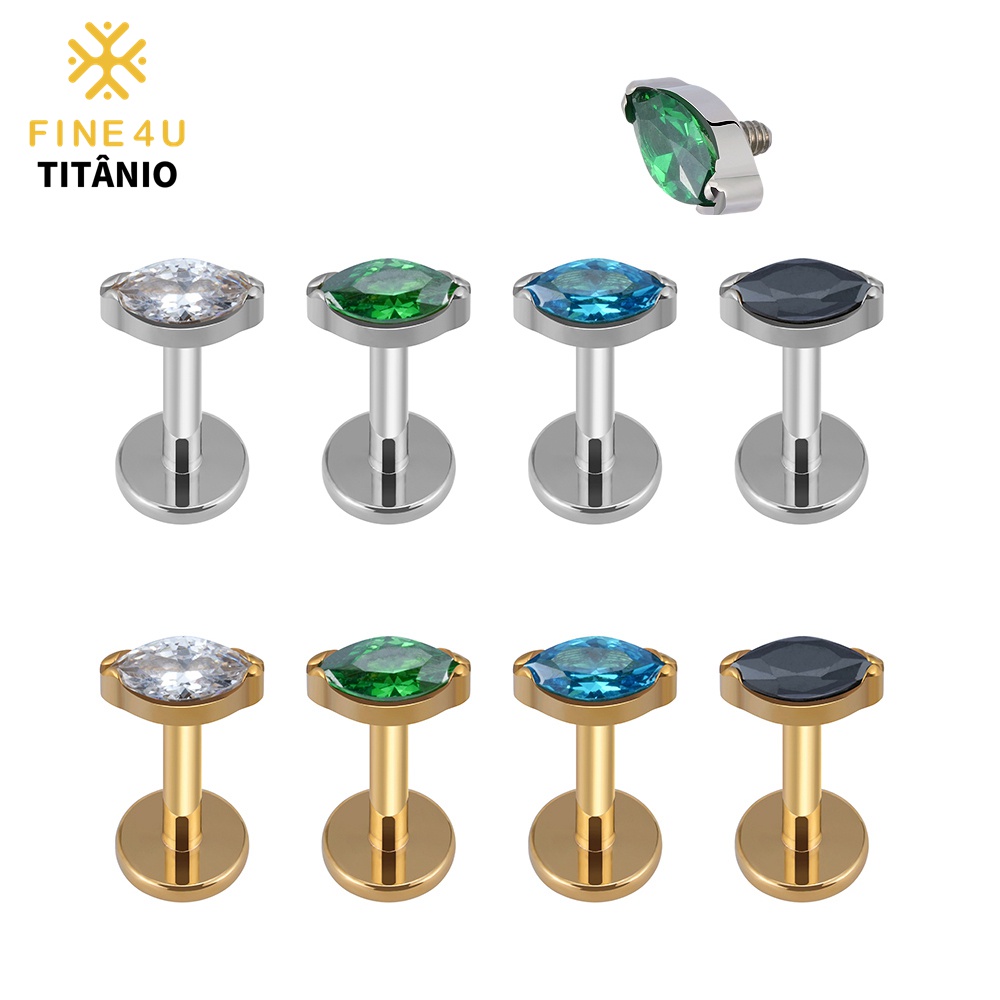 FINE4U Piercing Titânio Tragus Flat Helix Labret Com Zircônia Hipoalergênicos