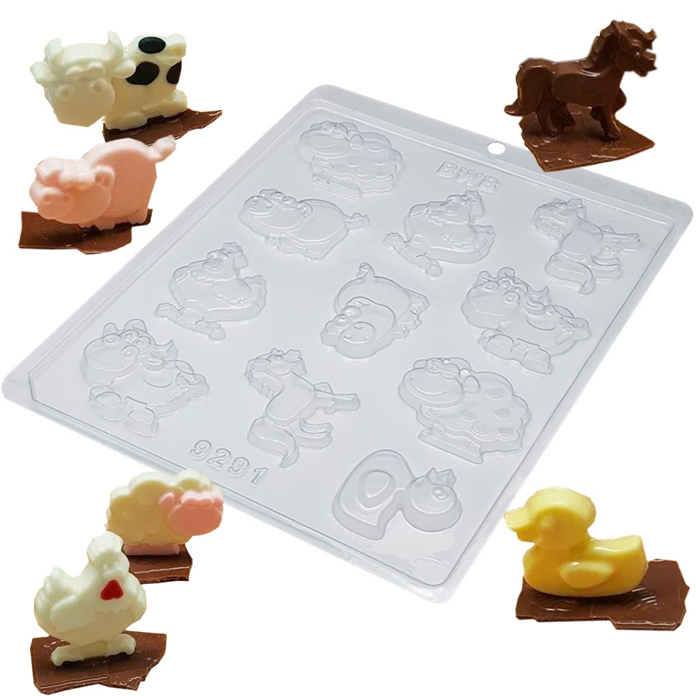 2 Formas de Acetato para Chocolate BWB Kit Simples Sem Silicone Animais da Fazenda Simples (9291)