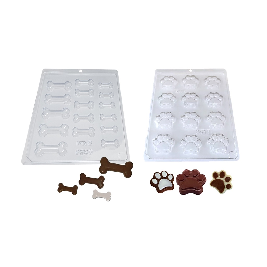 Kit Formas de Acetato para Chocolate BWB Simples Sem Silicone Osso + Patinha