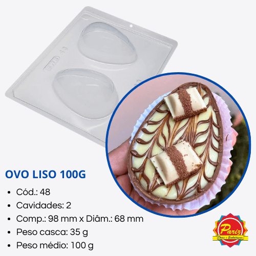 KIT 3 Formas Ovo Liso 100g 3 Partes com Silicone C.48 Forma para Chocolate Ovo Páscoa - BWB