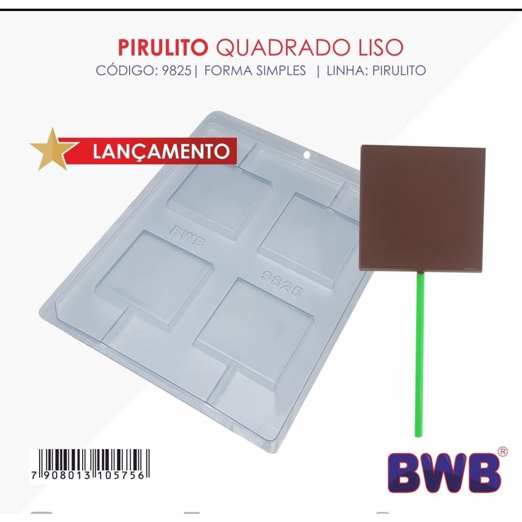 Kit com 04 Formas Simples Para Chocolate Pirulito Quadrado Liso BWB COD :9825