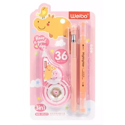 KIT 3 EM 1- fita corretiva, corretivo caneta e marca texto - papelaria criativa