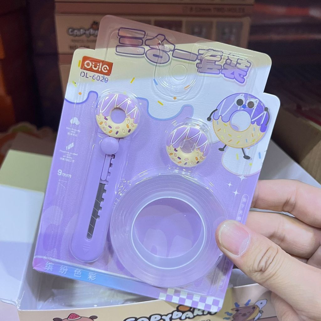 Kit Completo 3 em 1 com Estilete, Fita Adesiva e Suporte Integrado