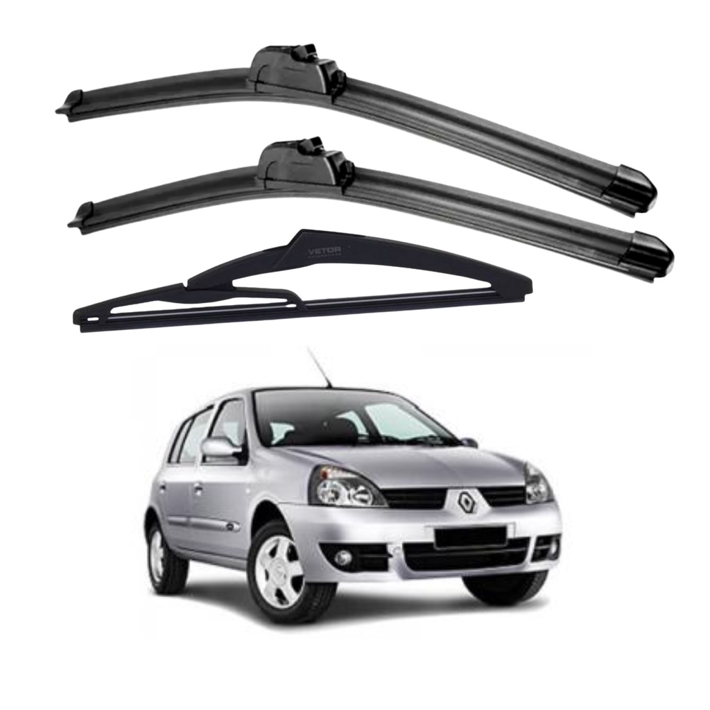 Kit 3 Palhetas Limpador De Parabrisa Dianteiro + Traseiro Renault Clio Hatch Ano 1999 2000 2001 2002 2003 2004 2005 2006 2007 2008 2009 2010 2011 2012