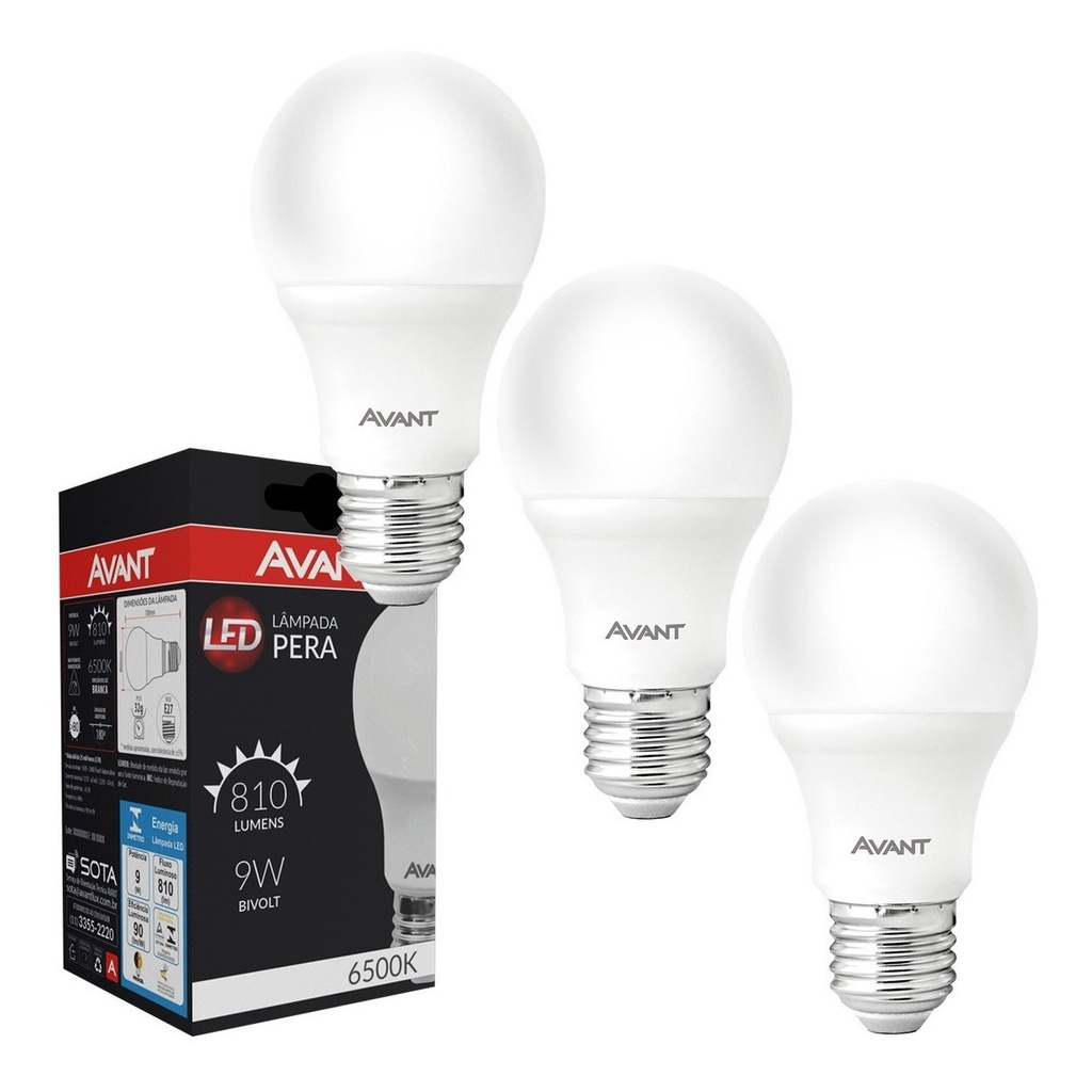 Kit 3 Lâmpadas Led Bulbo Pera Bivolt 9w Luz Branca Avant
