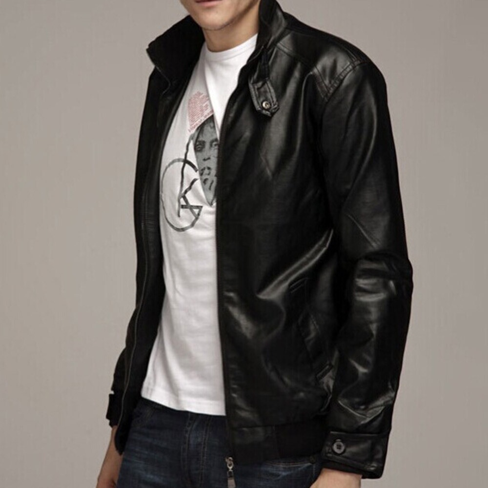 Jaqueta de couro slim fit masculina/jaqueta com zíper para motocicleta/casaco casual para primavera/outono/inverno